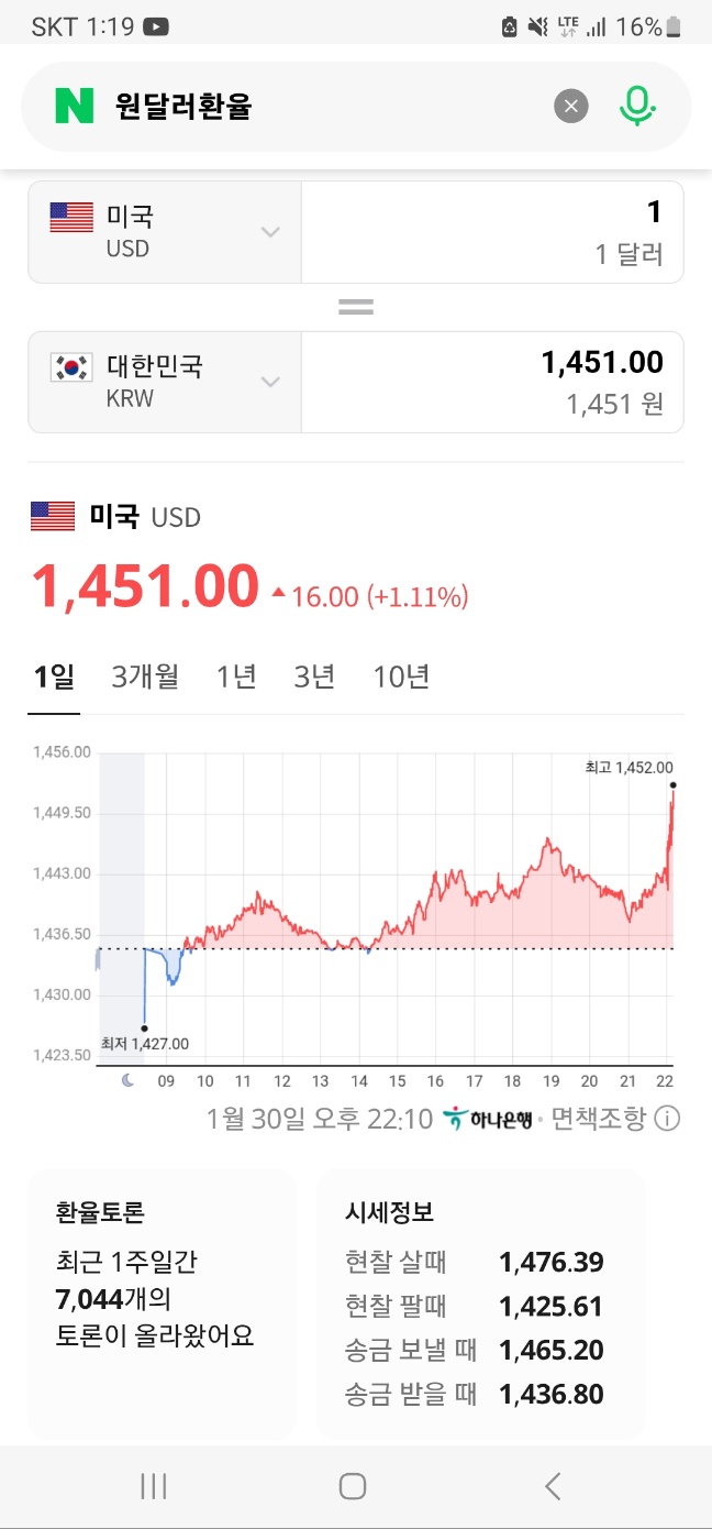 그런데도 한은 총재는 최근 환율 급등을 이해하지 못하겠다며 외부의 힘으로 환율이 1430선에 머무는 것을 다행이라고 했습니다. (연금연구회 홈피 자료실에 관련 내용을 포스팅했습니다.)