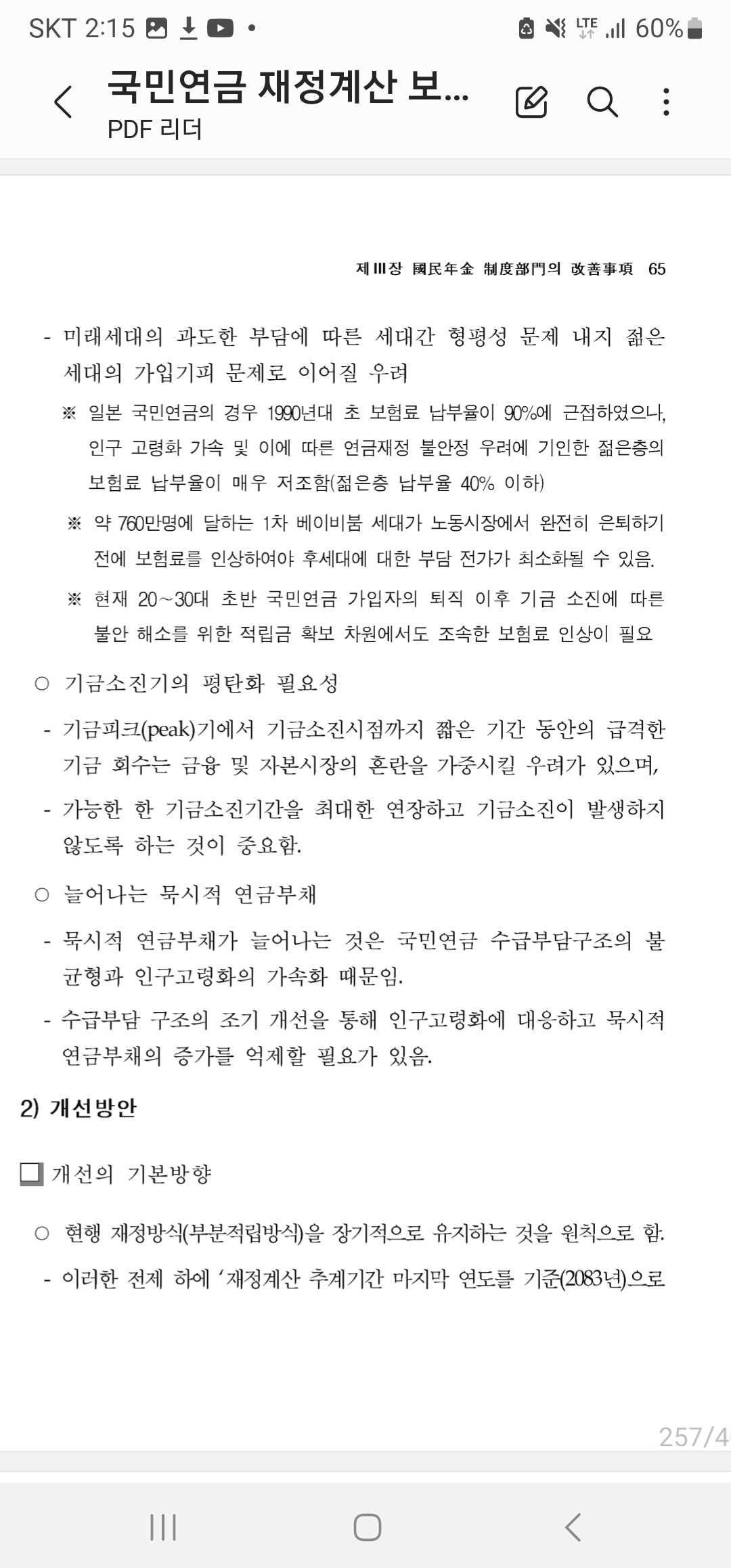 윤석명 위원의 발제 내용을 기초로 하여 작성되었다. 보고서에 수록된 내용은 당초 윤석명 위원이 제안했던 재정안정 방안에 비해 그 강도가 대폭 완화된 것이다.
