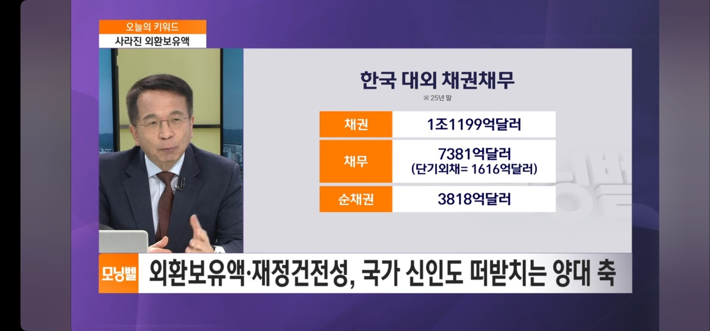 정책당국에서는 한국의 외환보유고가 적정한 수준이며, 대외 순채권국이라서 환율 문제가 크게 우려할 상황이 아니라고 강조해 오고 있습니다.